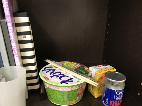 日本酒のワンカップと鬼ころし?とカップラーメン(笑)