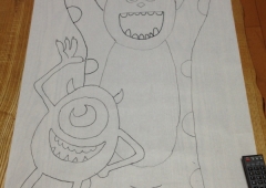 もうすぐ戸出の七夕まつり 息子の行燈作りの手伝いをしました テーマは僕の大好きなディズニーということで、いろいろ悩みましたが、モンスターズインクにしました まずは下書き お手伝いというか…全部描いてしまった(笑) (((o(...