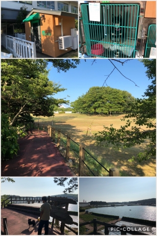 犬小屋はちょっと狭くてかわいそうな気もしますが、海水浴もあったし散歩コースも雰囲気が良くて家で留守番よりはいいかな