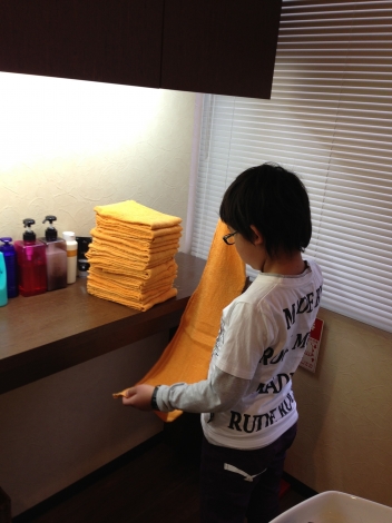 タオルをたたんだり、お客様のお子さんの遊び相手になったり、いろいろ手伝ってくれました。