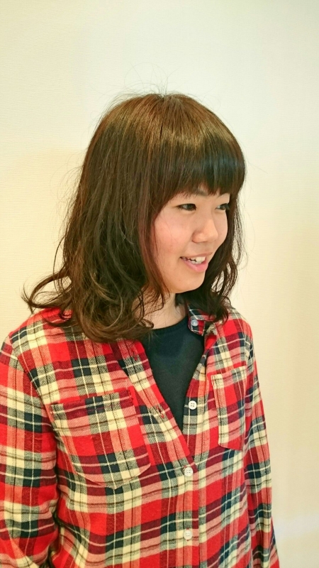 お客様のご要望にお応えして、毛先のゆるふわパーマ・ベージュ系の色にさせて頂きました![]()