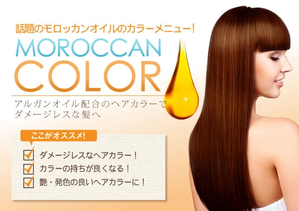 人気のモロッカンオイルとカラー剤を調合し、髪のまとまり感、ツヤ感、色持ちをアップさせる【モロッカンカラー】