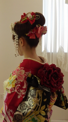 今日は成人式の前撮りがありました。どんなヘアスタイルにするか相談しながら決めたスタイルはきゃりーぱみゅぱみゅがしていた着物のスタイルになりました。お着物もとても素敵な柄のお着物でしたのですごく可愛いかったです。