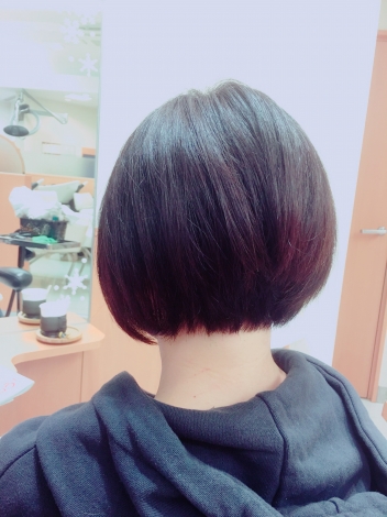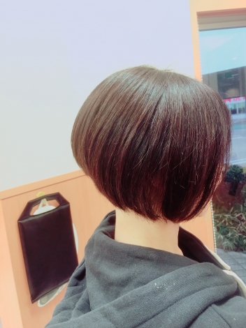 今日は後ろをスッキリさせ、前の雰囲気はあまり変えずに前下がりのボブにしましたっ(≧∇≦)