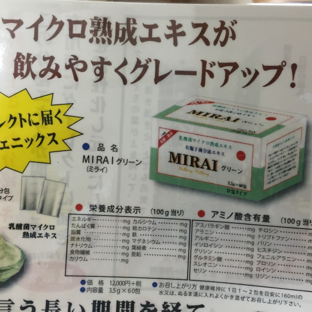 [乳酸菌マイクロ熟成エキス]・・・ミライが、発売され当店でも販売いたします。
