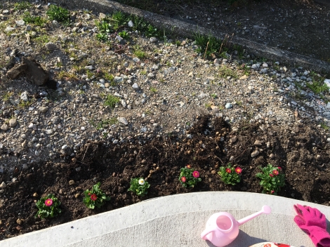かろうじて植えたチューリップの球根が少しのびはじめました。